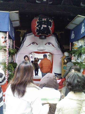 入り口は大きなおたふく顔の門
